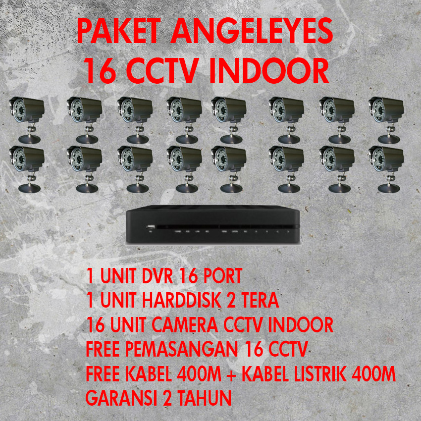 1 UNIT DVR 16 PORT 1 UNIT HARDDISK 2 TERA 16 UNIT CAMERA CCTV INDOOR FREE PEMASANGAN 16 CCTV FREE KABEL 400M + KABEL LISTRIK 400M GARANSI 2 TAHUN