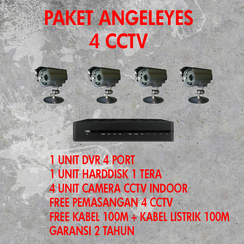 1 UNIT DVR 4 PORT 1 UNIT HARDDISK 1 TERA 4 UNIT CAMERA CCTV INDOOR FREE PEMASANGAN 4 CCTV FREE KABEL 100M + KABEL LISTRIK 100M GARANSI 2 TAHUN