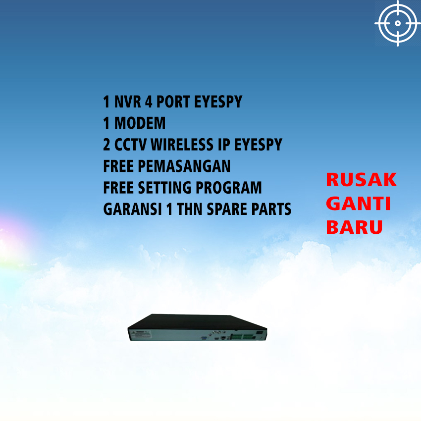 1 NVR 4 PORT EYESPY 1 MODEM 2 CCTV WIRELESS IP EYESPY FREE PEMASANGAN FREE SETTING PROGRAM GARANSI 1 THN SPARE PARTS