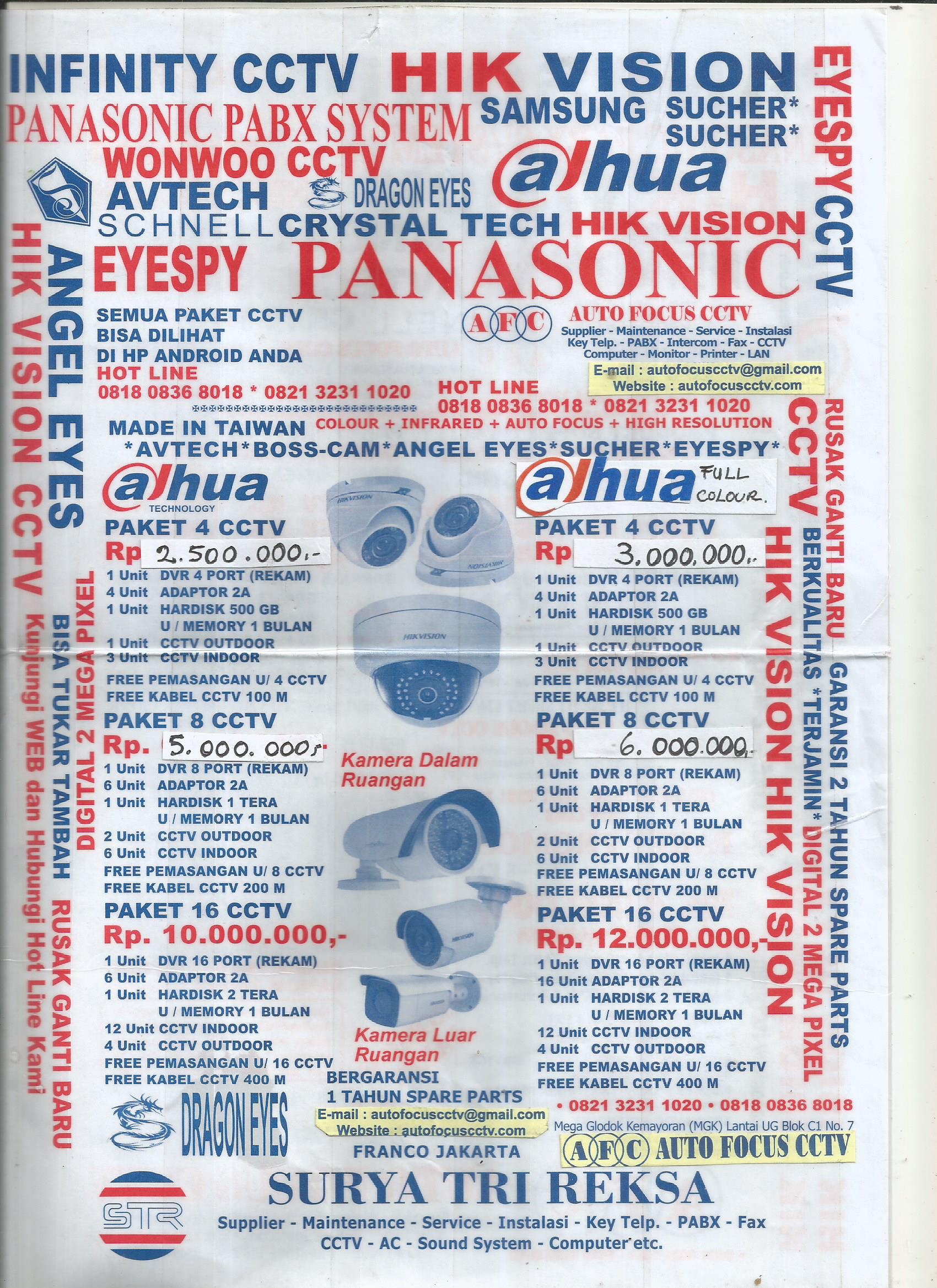 Paket Murah Cctv 2 ,4 , 8 , 16 Camera Berbagai Merk